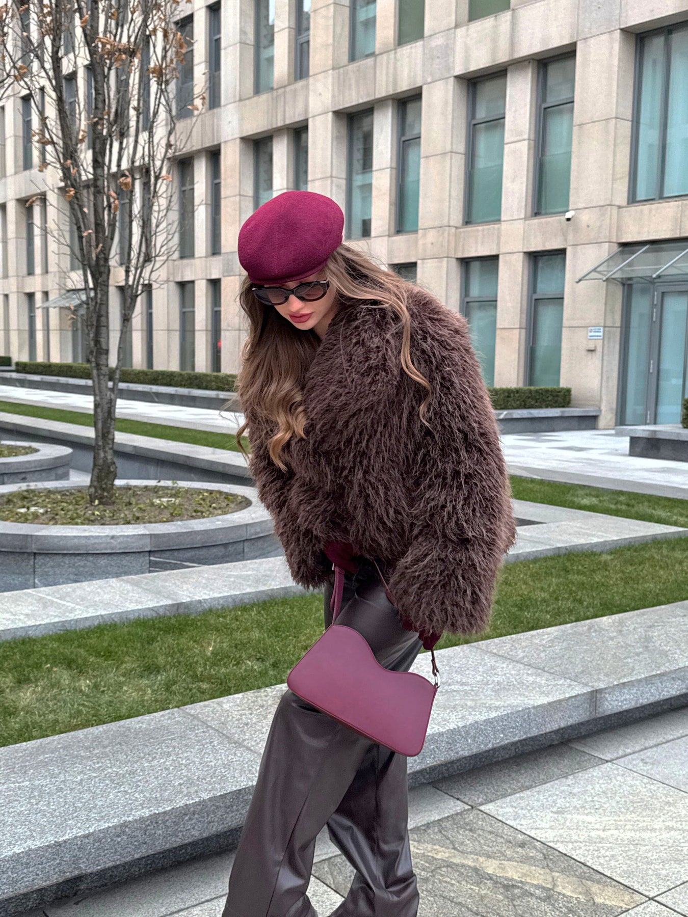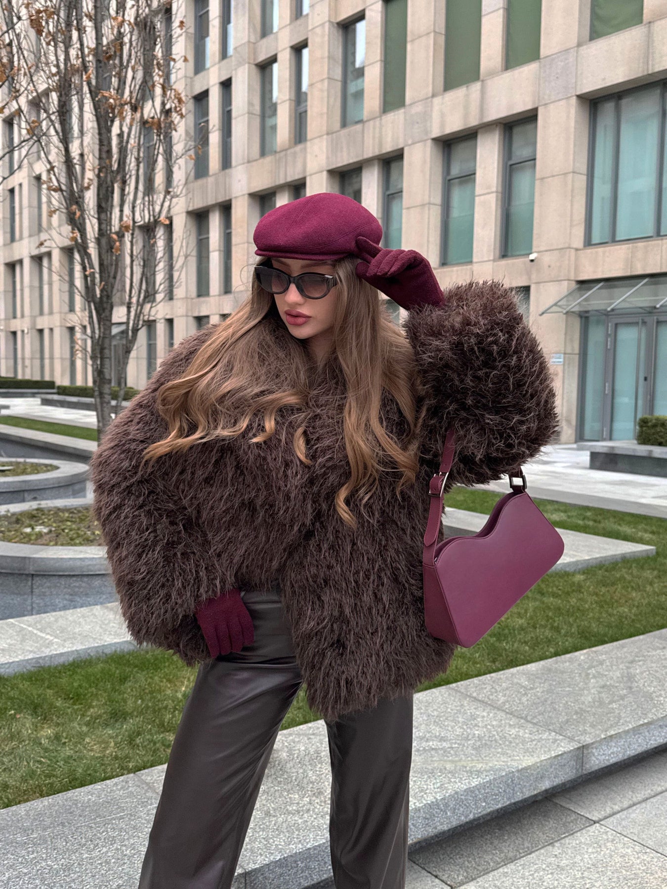 Schultertasche MILEVA aus Leder - Merlot